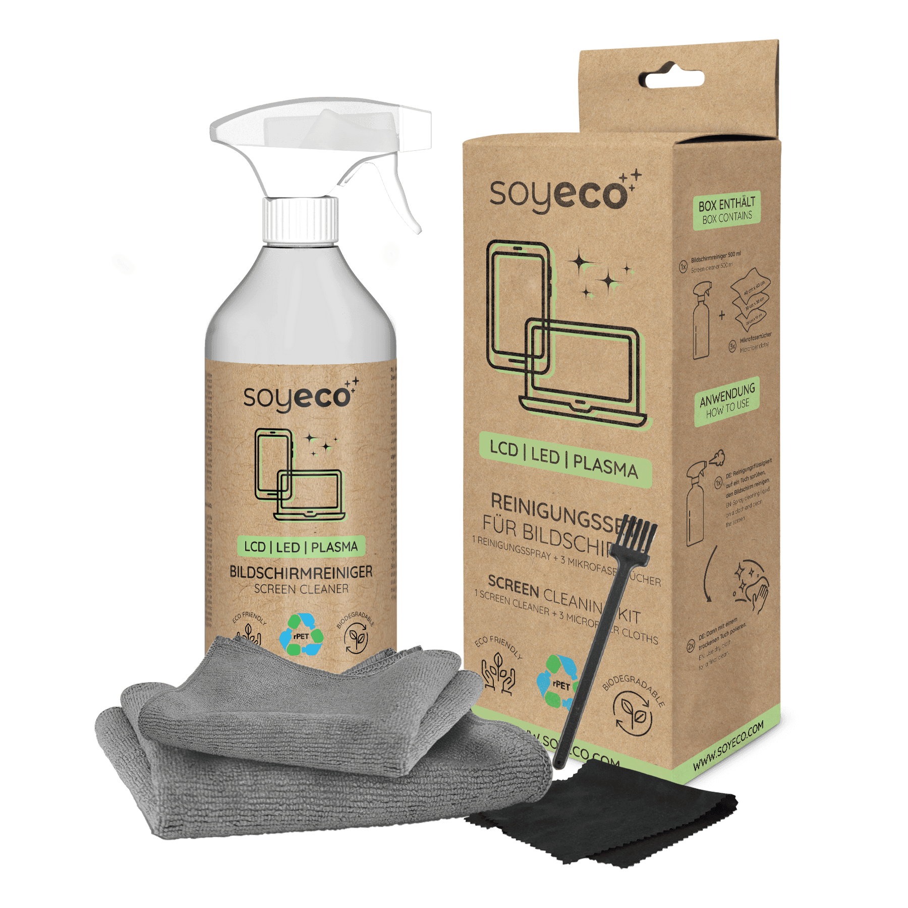 Soyeco – Screen Cleaning Set (spray + 3 microfiber)
